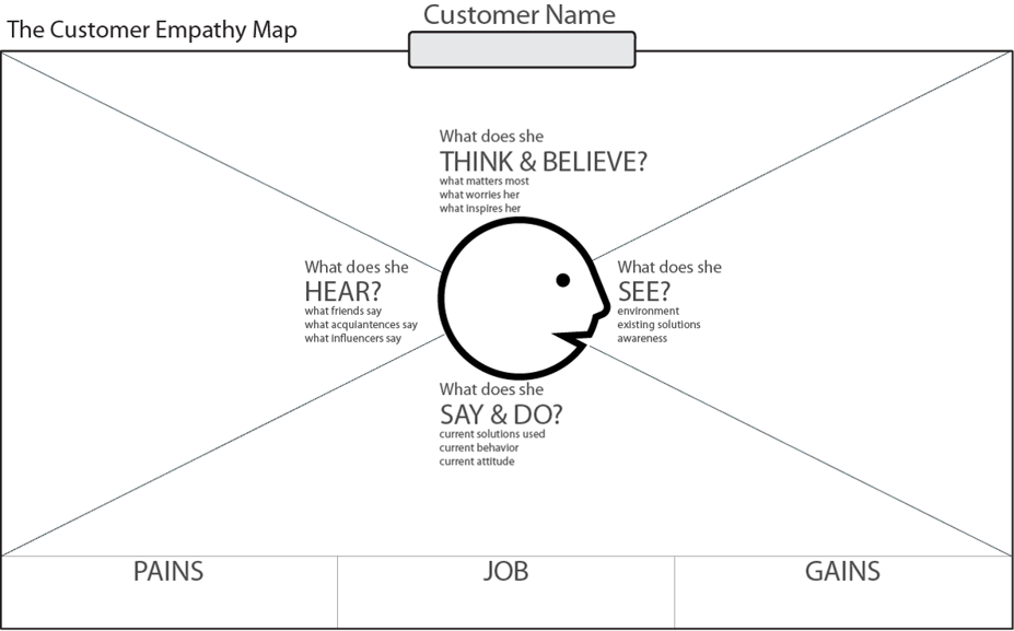 The Customer Empathy Map captures the assumptions around the jobs to be done.